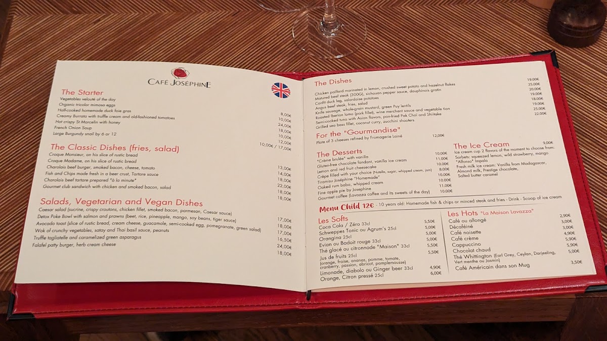 Welcome to Cafe Josephine, a delightful culinary gem nestled in the heart of Paris at 3 Pl. des Deux Ecus. This charming café boasts a menu that beautifully marries classic French flavors with standout dishes that will leave your palate singing.